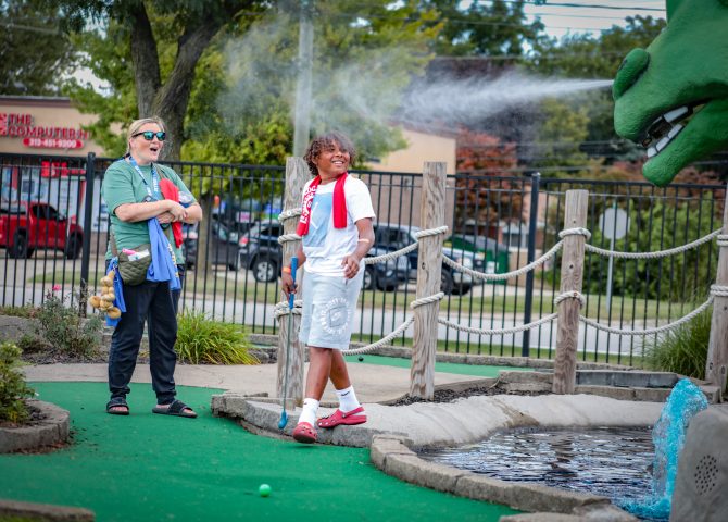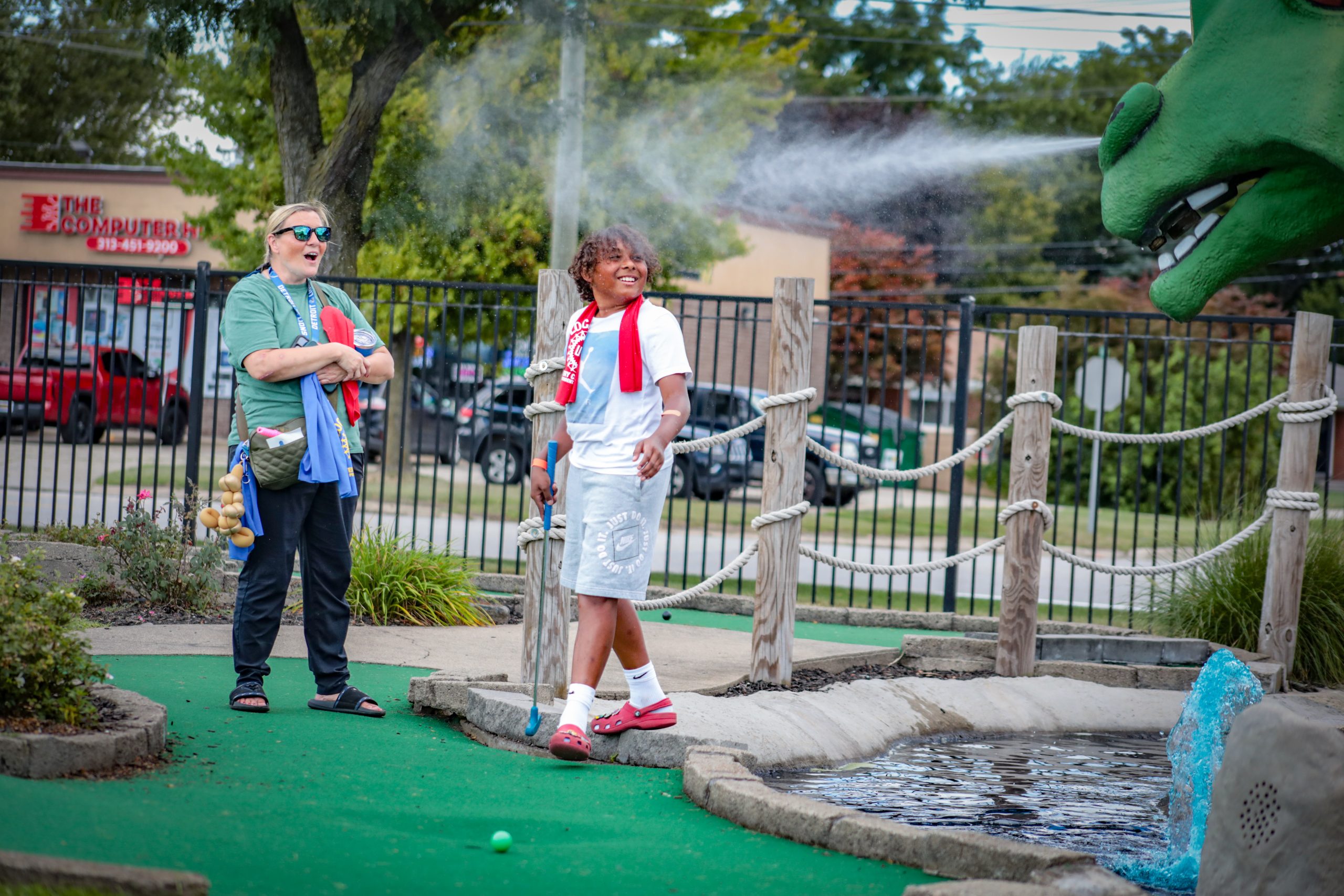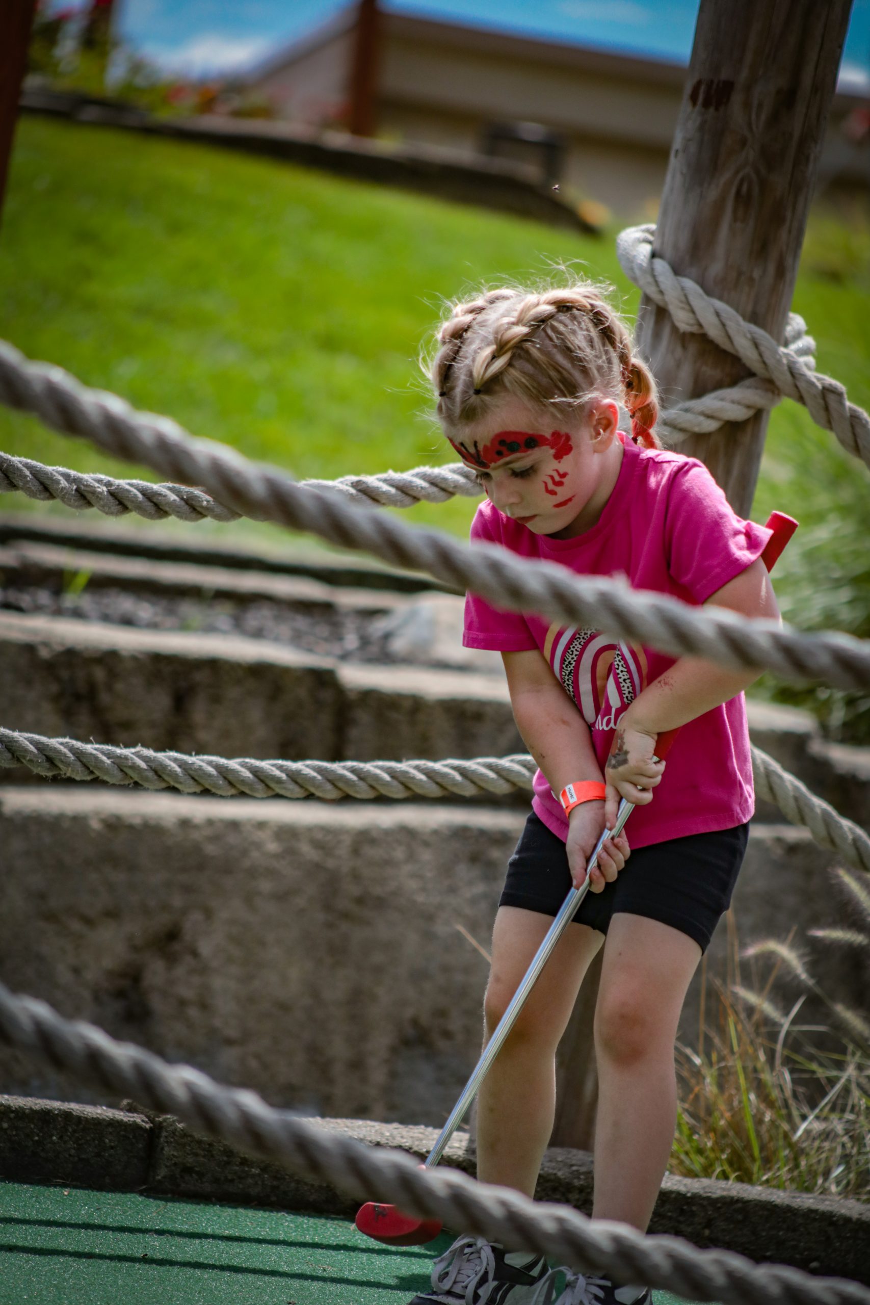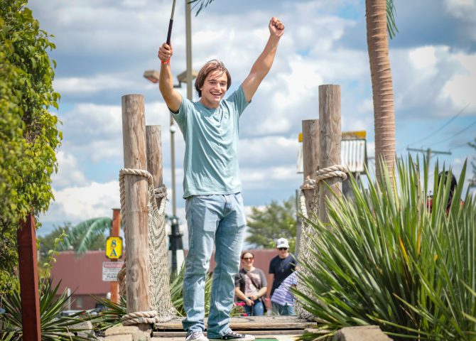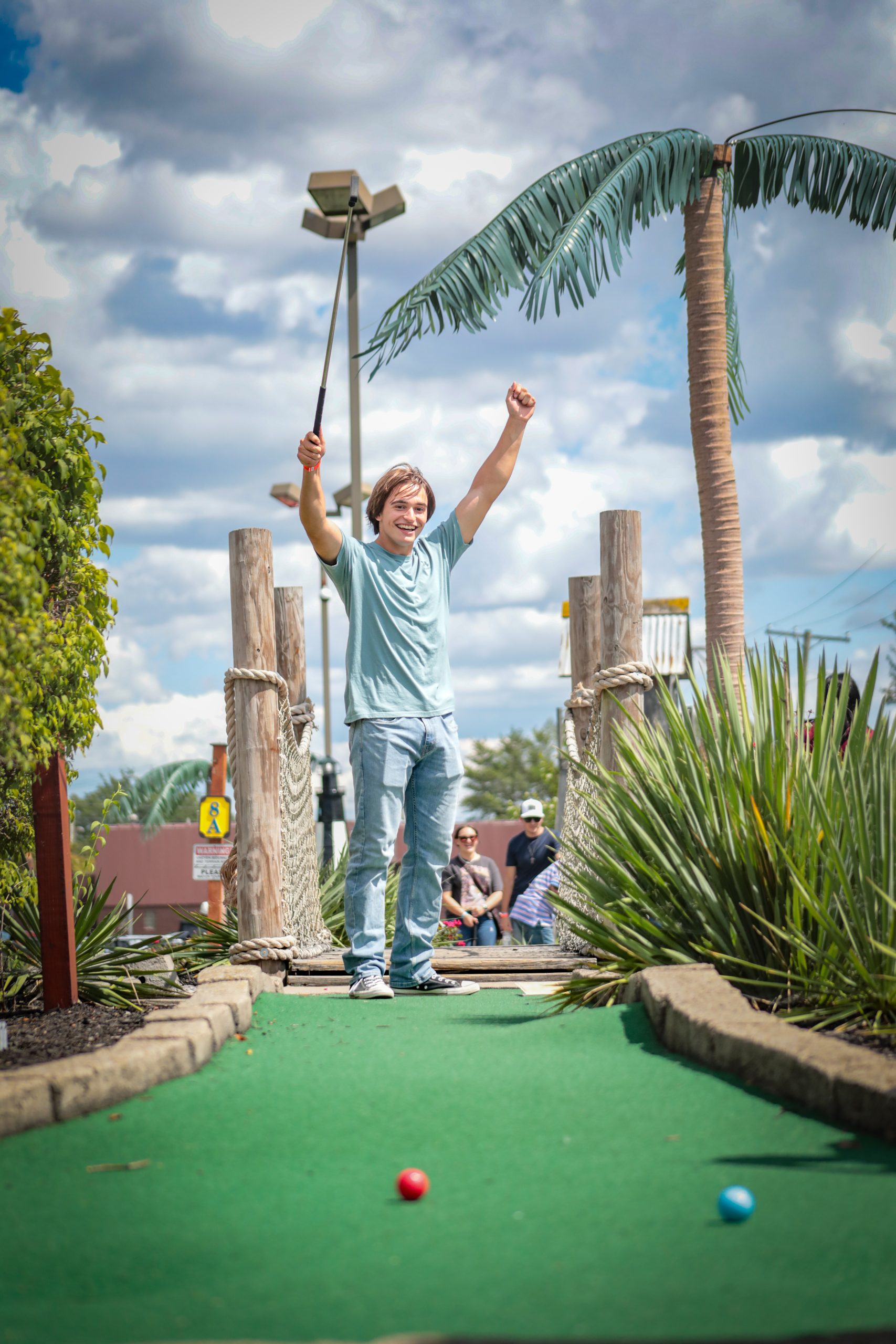 Our 18-hole courses are an adventurer’s dream! Featuring pirate ships, sea monsters, waterfalls, and palm trees, you’ll feel like you’ve slipped into a Caribbean adventure as you play through a scenic landscape. Full of twists and obstacles, our courses are a fun and challenging experience for players of all skill levels!